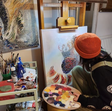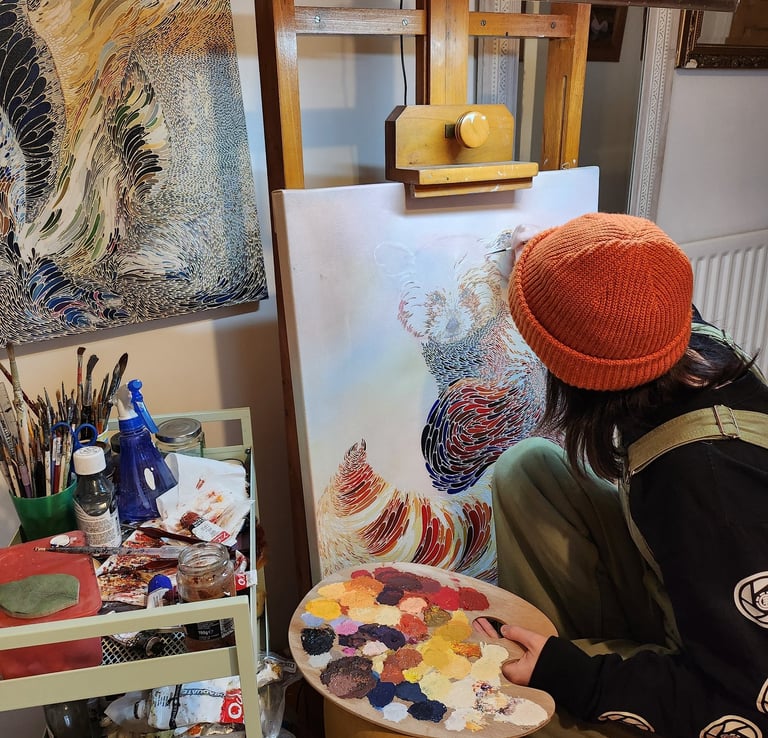Ruby Addison is a fine artist based in Somerset, specialising in oil painting. After earning a BA in Contemporary Art and an MA in Fine Art from Bath Spa University, Ruby creates her artwork in her home studio. Each of her paintings consists of thousands of brush strokes reflecting the unique colour palette of her subjects. She draws inspiration from nature, highlighting the beauty of often-overlooked subjects. With a deep passion for the environment, Ruby regularly explores themes related to the planet and species that are at risk of harm.